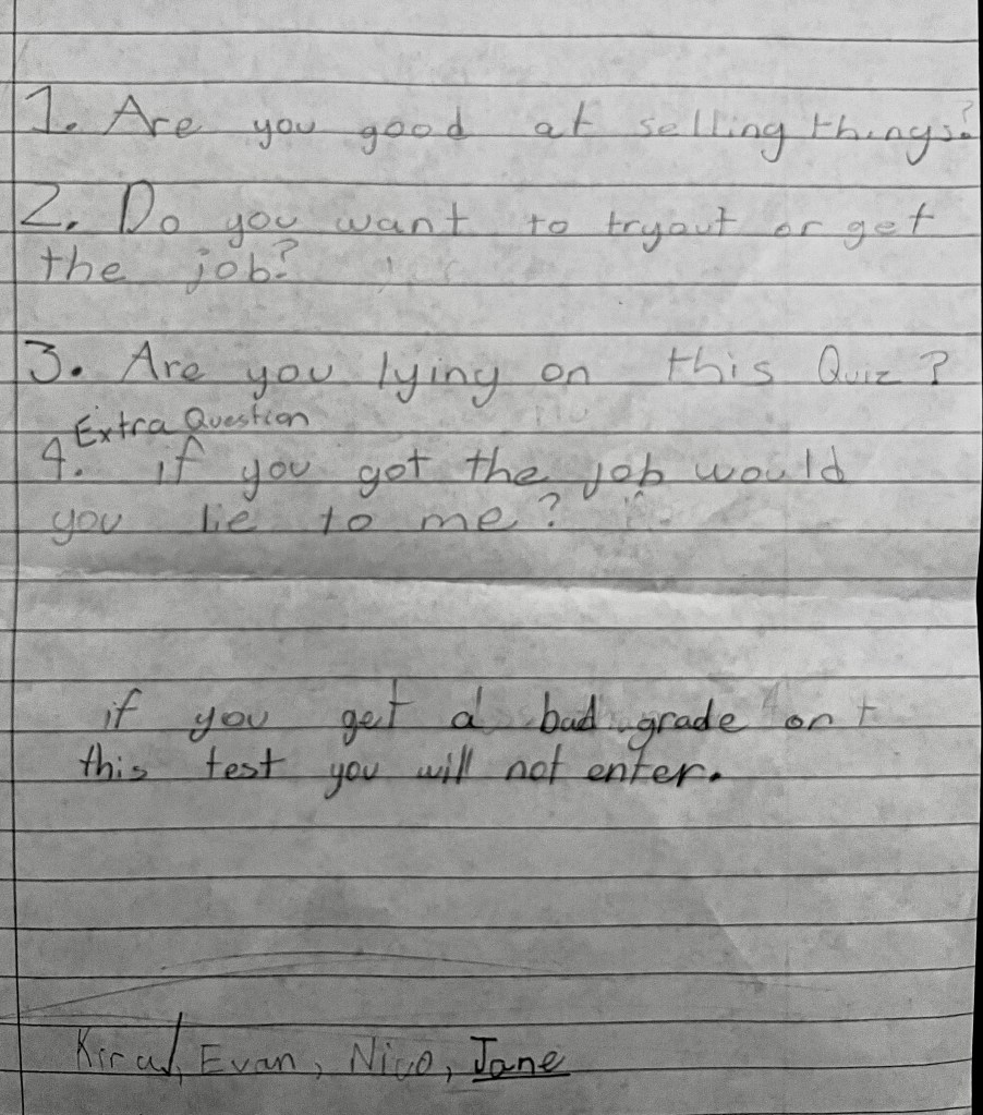 Have you ever come across something so unexpectedly hilarious that it makes your day? That happened when I found a piece of paper with some odd questions in my daughter’s school bag. I was curious, so I asked her if this was a school paper for a project, and she said, “No, Dad, I wrote these questions to ask my friends that want to work for Flucos.”